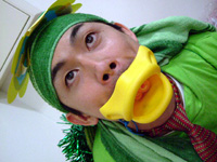 写真は、ごみゼロ探偵団の時の変装。あにぃカッパ君。
